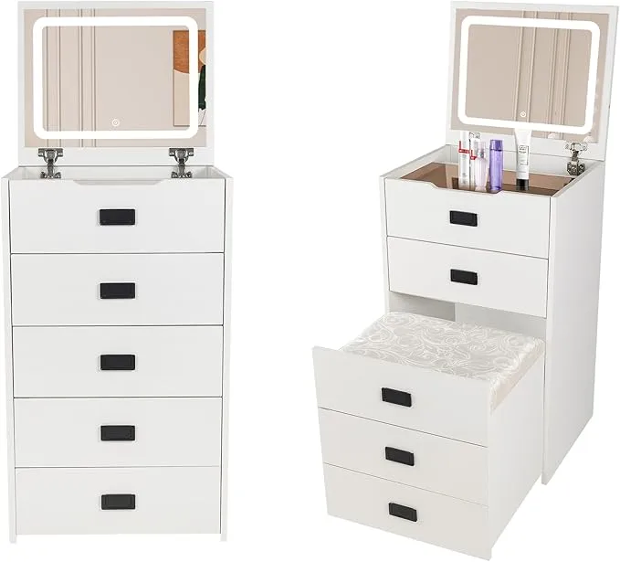 White Makeup Vanity Desk with Flip Top Mirror Lighting, Makeup Dressing Table with Internal Storage Area, Dressing Table with Storage Makeup Stool