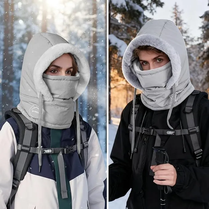 MULTIFUNCTIONAL FACE COVER & NECK GAITER: Designed with an integrated face cover and neck gaiter, this hat ensures full coverage against cold temperatures, snow, and wind. The all-in-one design eliminates the need for multiple accessories, providing convenient all-around protection while maintaining breathability for outdoor adventures and daily wear.