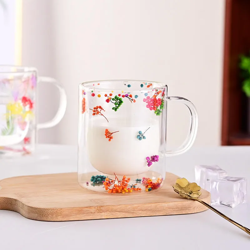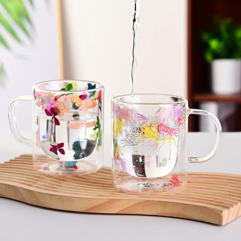 Each mug is carefully handcrafted, making every piece unique and visually appealing. The crystal-clear transparent finish highlights the vibrant floral elements inside the glass, creating a floating effect that looks beautiful with tea, coffee, milk, green tea, herbal drinks, or even plain water.