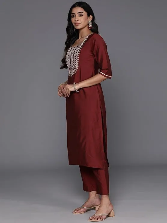 The minimal yet elegant design makes this kurta set versatile—pair it with traditional jewelry and heels for a festive look, or style it with flats and light accessories for a relaxed, everyday appearance. Its timeless color and embroidery ensure it never goes out of fashion.